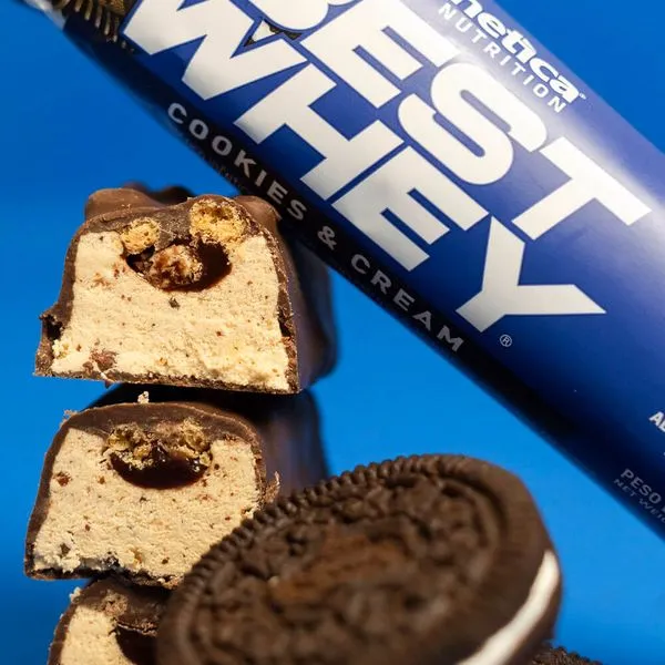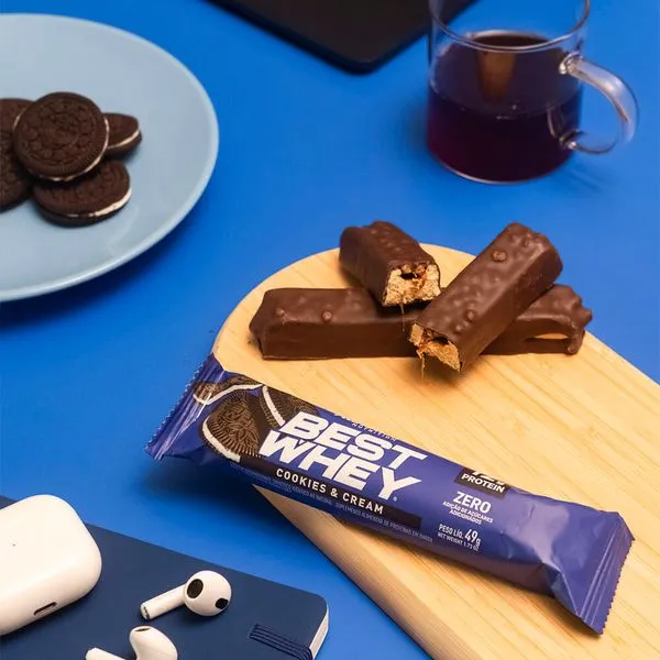 Sabemos que buscas opciones que sean más que un snack: Es por eso que llega esta excelente barrita de proteína directo de Brasil. Best Whey Bar 12gr – Cookies & Cream llega para ser ese aliado delicioso que puedes llevar contigo al trabajo, al gimnasio o simplemente para darte un gusto consciente. Con ella, no tienes que renunciar al sabor ni al objetivo de cuidar tu masa muscular.